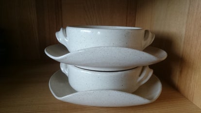 Plate with separately bend edges on the two sides, is approximately 21 cm in diameter