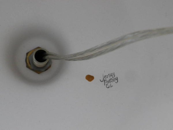 Sweet ceramic lamp made by Jersey potteryI sell it without hood - everyone has their own taste, you can easily attache your own lampshadeabout 13 cm highBrown motiftypical motifs for 70's, fits German ceramics