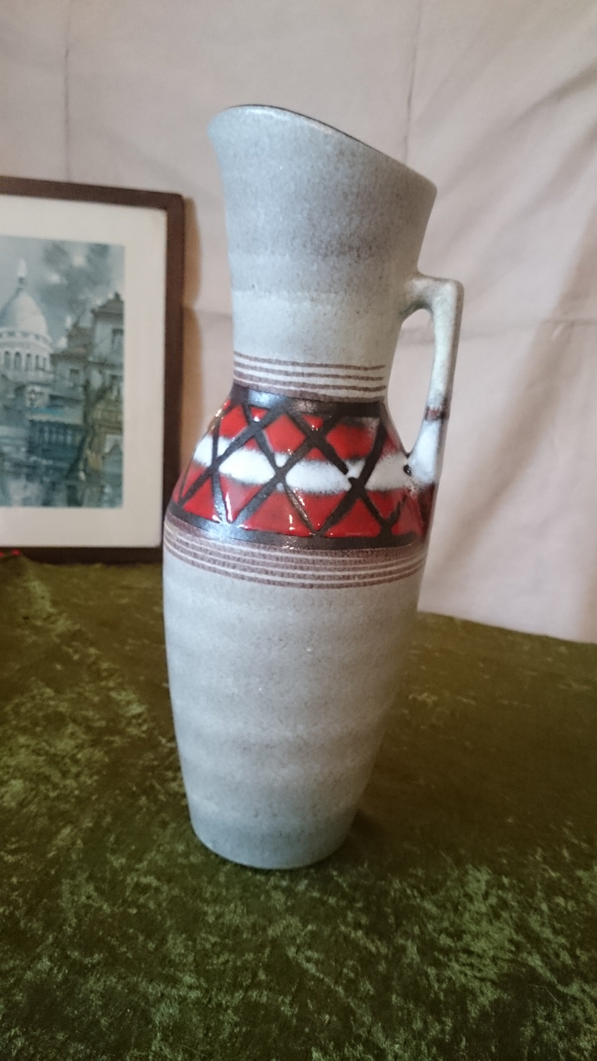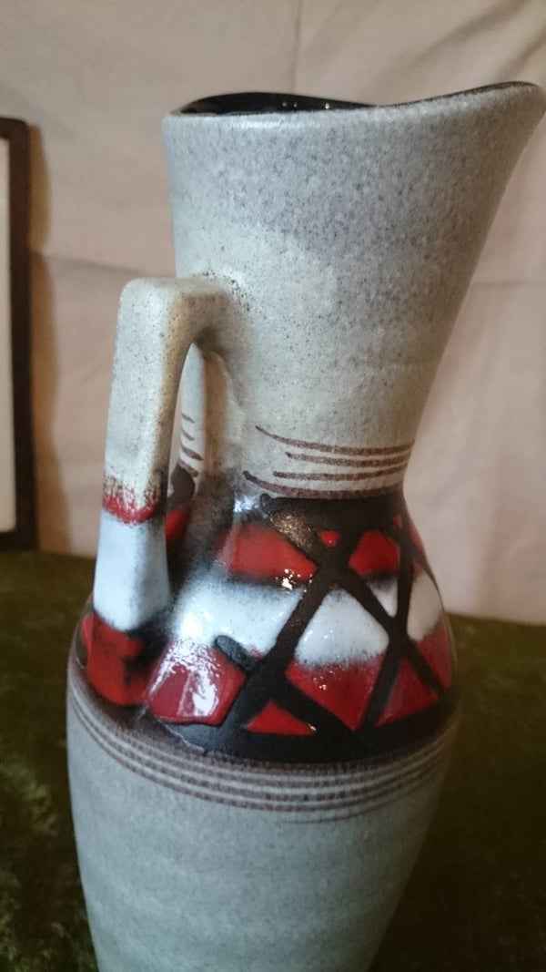 Typical example of West Germany ceramics in the Fat lava period Approx. 35 cm high vase made by ScheurichBeautiful color combination - light grey base with white-red-black accents
