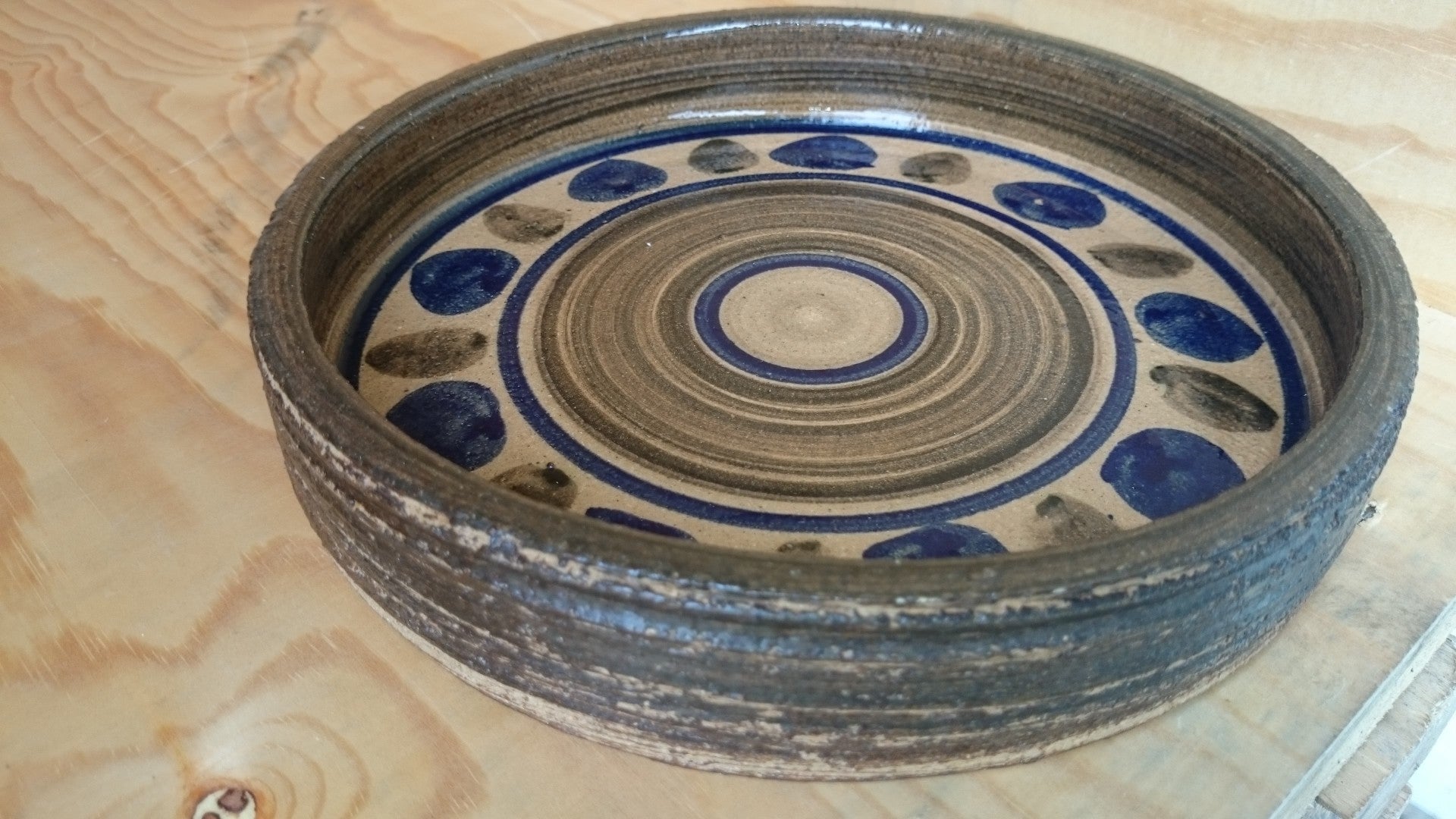 Danish ceramics are known for their robust, coarse almost minimalist designsBowl is 4 cm high and has 21.5 cm diameterNice paint in dark blue and beige