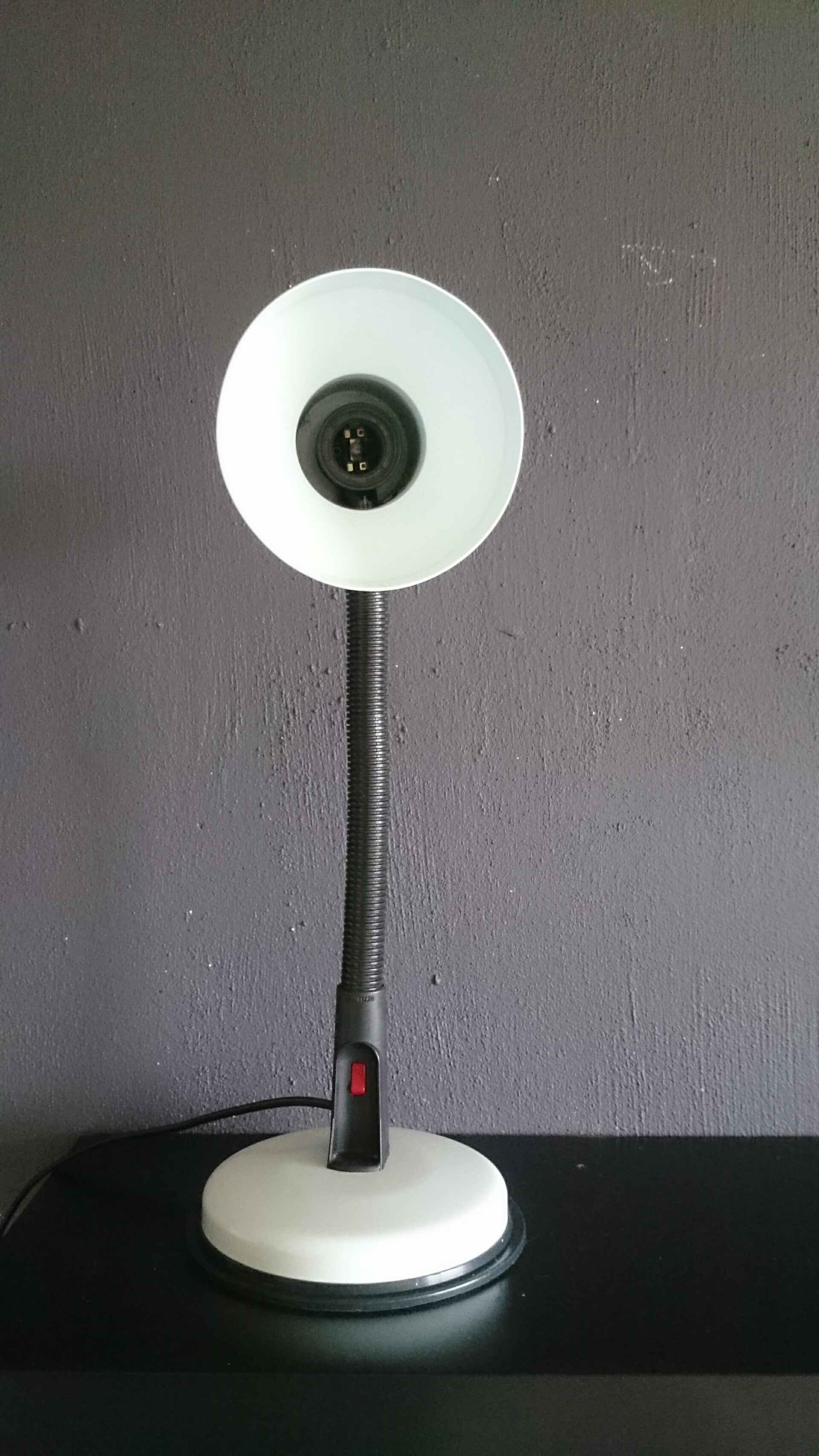 Original Veneta Lumi lampSomething special is the red switch button on the neckColor is pure whiteFurthermore, the lamp is in good condition for the ageLength 46 cm (max)width 13 cmdepth 7 cm