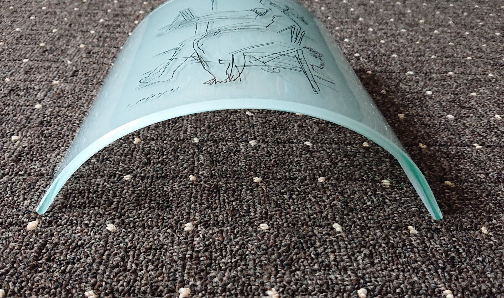 Painting on the glass, drawing by I. Moralis from 1951 Mορφή (Form) Edition of Zoumboulakis galleries from 2009. size 22 x 23 cm In excellent condition You can put a tea- light behind it