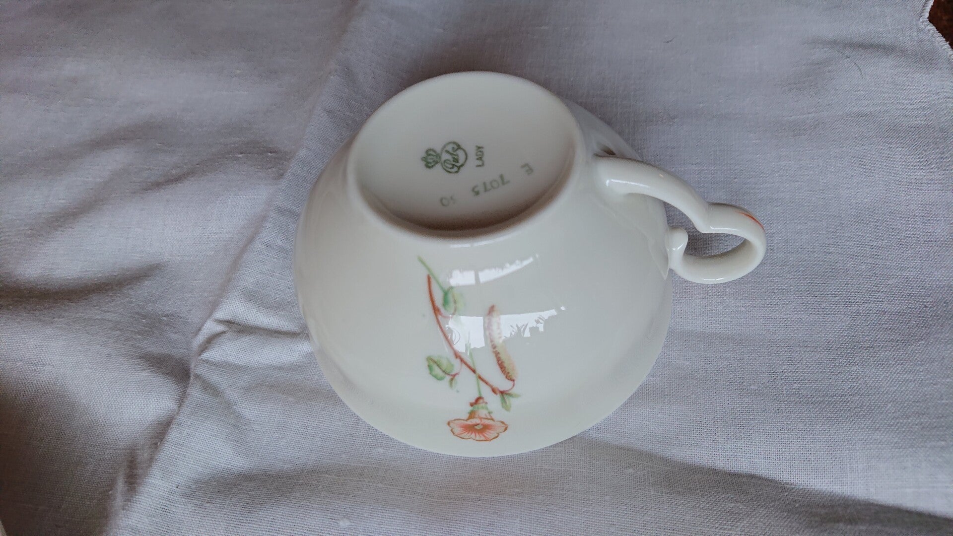 Zeldzame antieke Puls Lady/ Empire porseleinen theekopjes en schoteltjes. Puls staat voor: Pfeiffer & Löwenstein, Schlackenwerth. Deze kopjes zijn van de eerste helft van xx eeuw in zeer goede staat