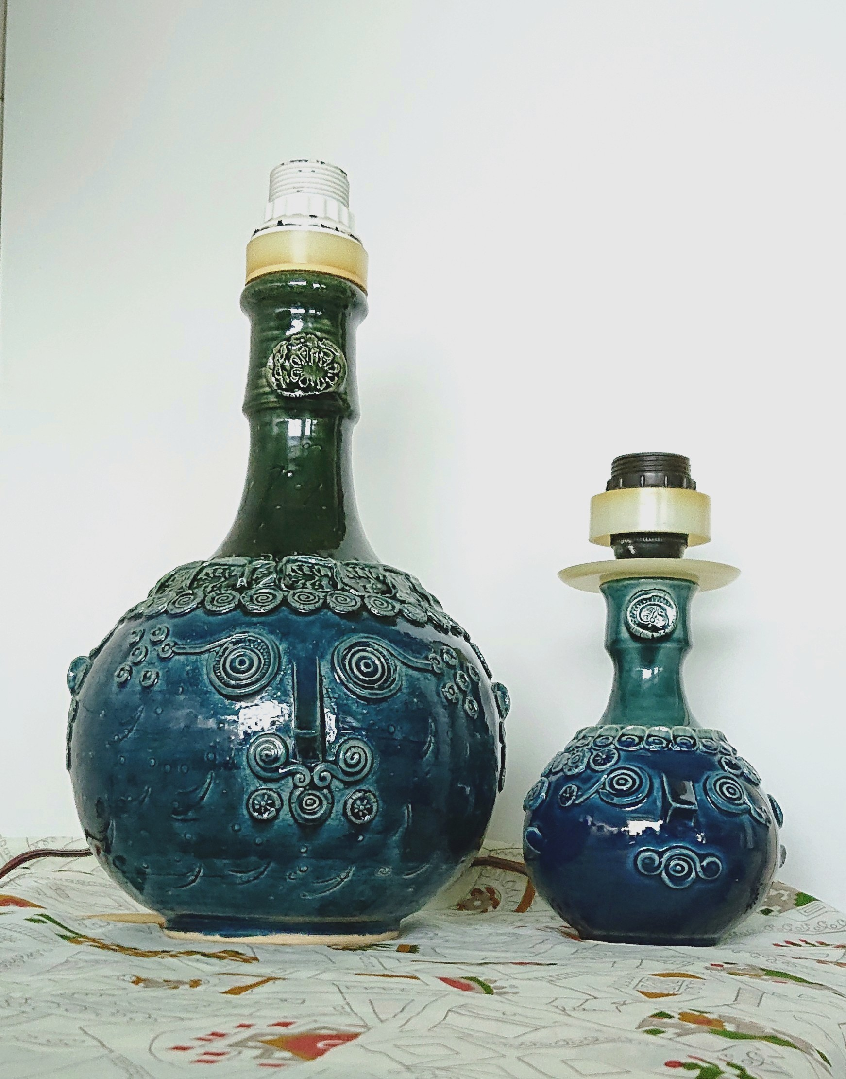 Two tablelamps by Bjorn Wiinblad Blue Head/ Face